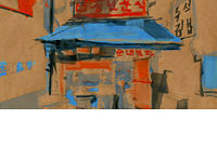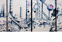 I had the pleasure to paint an imaginary cityscape about the future of Arita. It is painted on the original paper fusuma sliding doors of Egoshi House in Arita....